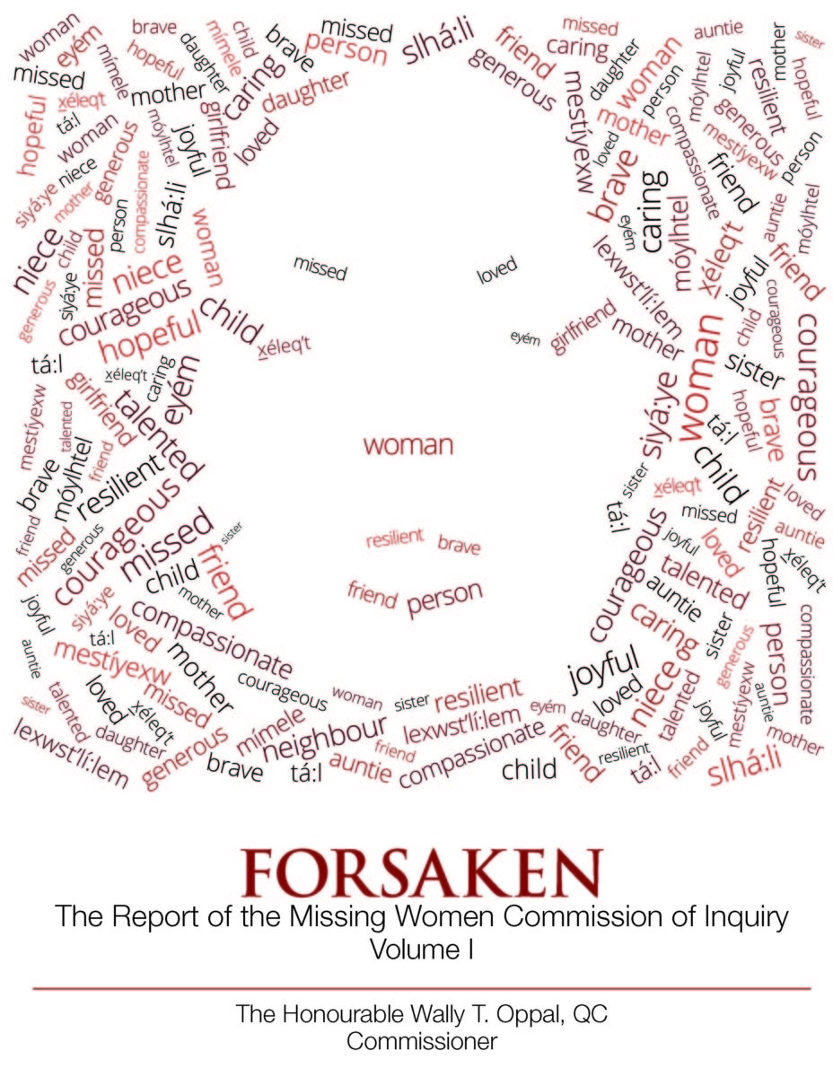 Wally Oppal, the commissioner of the B.C. Missing Women Inquiry, called its final report “Forsaken”. In it, he claimed that the women who were murdered were doubly forsaken, once by society, then by the police. Family, advocacy groups and community members say this report will make the third time.