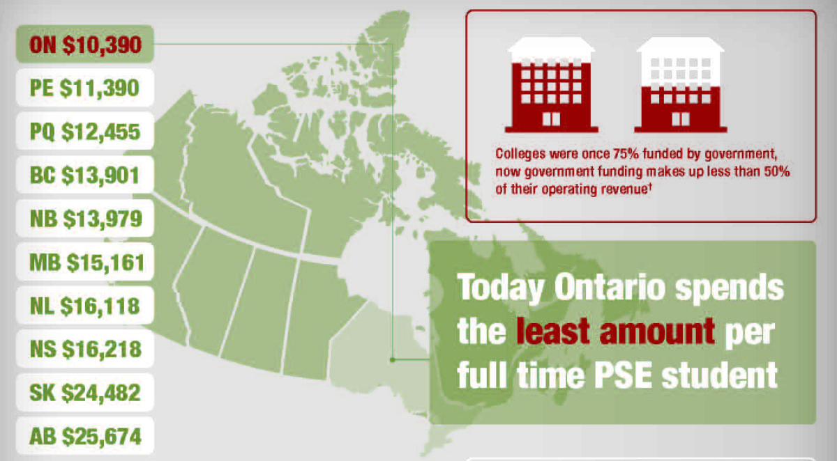 At the provincial level they call to bring up per-student government funding to the national average, roll-back college tuition to 1992 levels, cap college administrator salaries, and reintroduce a needs-based tuition grant program.