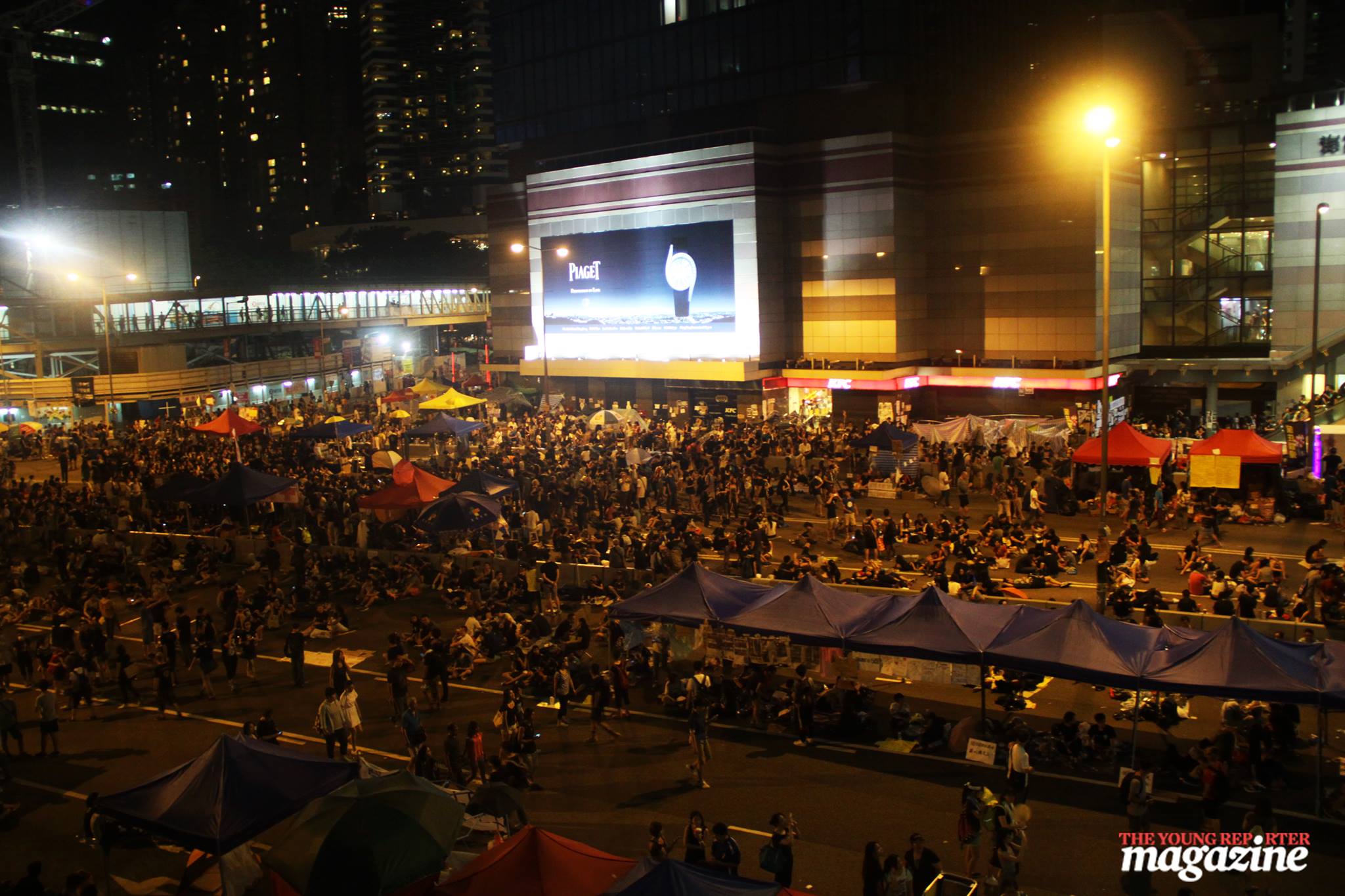 Students and the public volunteer to go to into the streets. More people donate different essential materials for the protesters. Mats to sit on in the streets, sponsored tents set up in the main roads, and the protesters take turns staying in the streets for 24/7, occupying Hong Kong’s four main business areas. They make use of this tactic to paralyze the city, taking it as a chip to force the government to withdraw the election restriction, crying for real democracy.