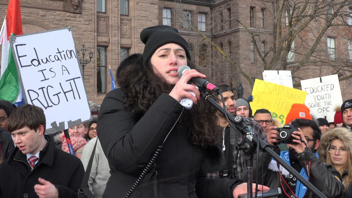 “Student democracy is under attack because this government is afraid of us!” shouted Nour Alideeb, chairperson of the Canadian Federation of Students’ Ontario, shouted to cheers from the crowd.