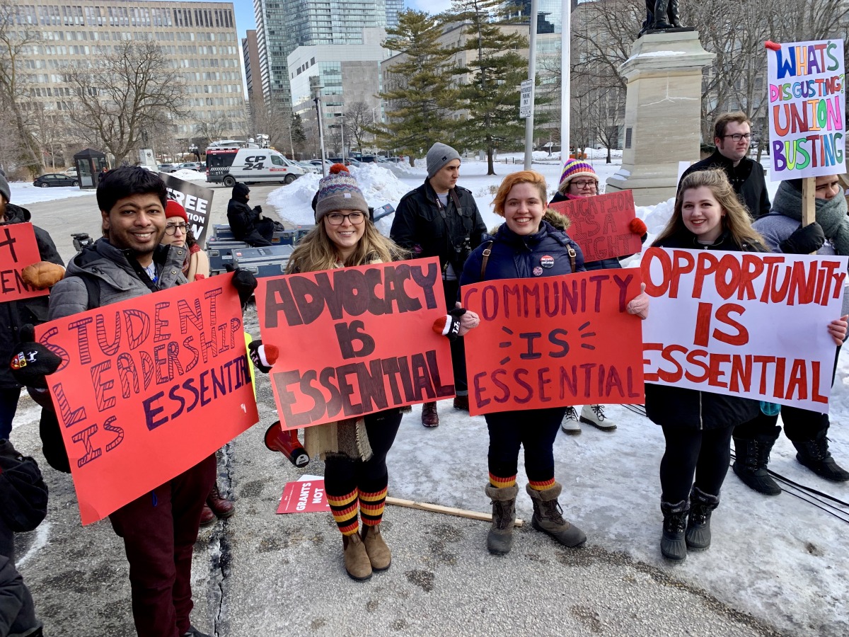 This was the fourth protest in Toronto surrounding cuts to the Ontario Student Assistance Program (OSAP) grants and the Student Choice Initiative. It is the first event in a “Week of Action” organized by the Canadian Federation of Students.