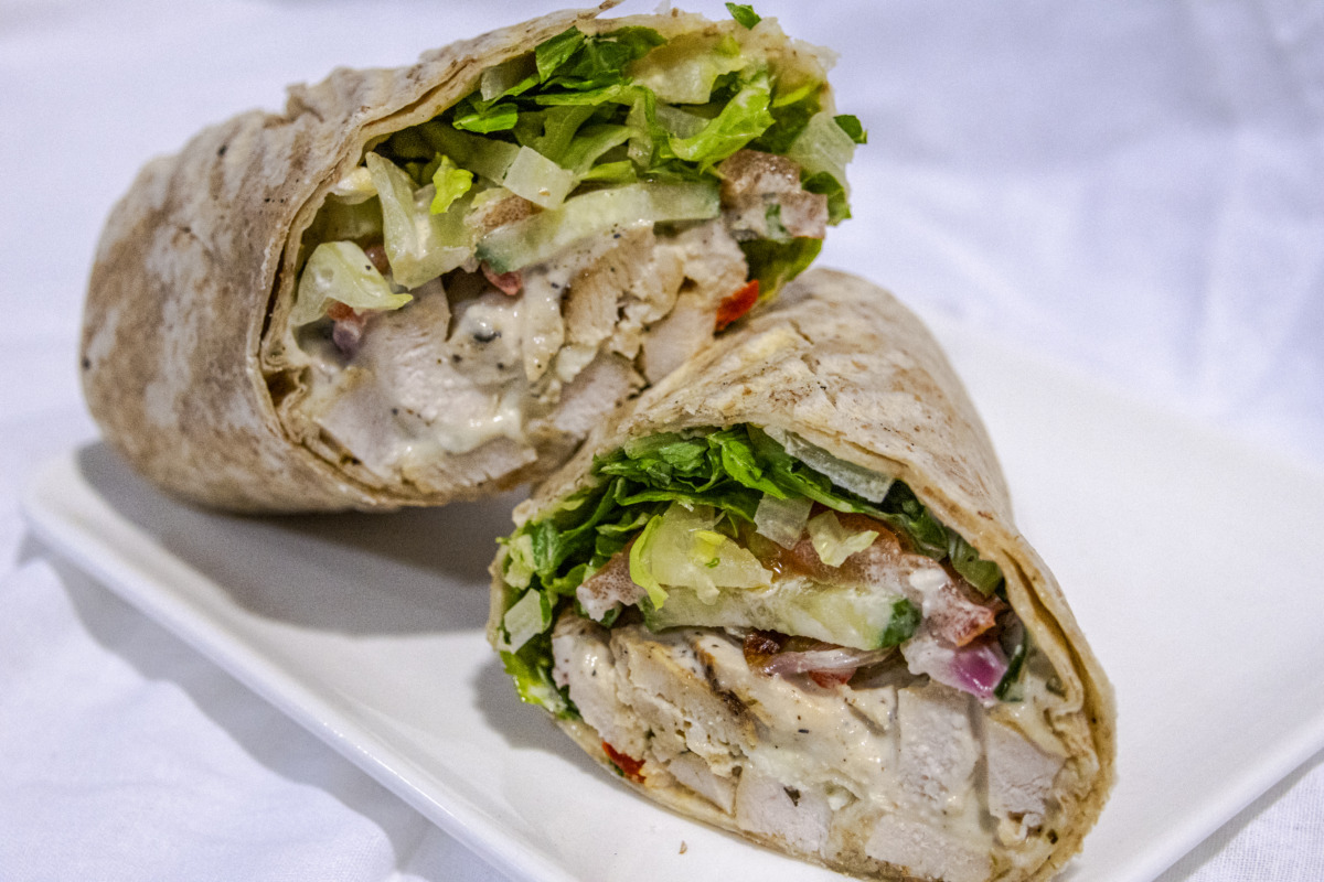 This wrap features juicy chicken combined with lettuce, tomato, red onion, red pepper, cucumber. It’s then topped with hummus, and a tzatziki styled Greek sauce. What stands out in this dish is the chicken, which is cooked to perfection without becoming dry. The mix of ingredients here leaves you wanting more and is as satisfying as the vegetables are crunchy.