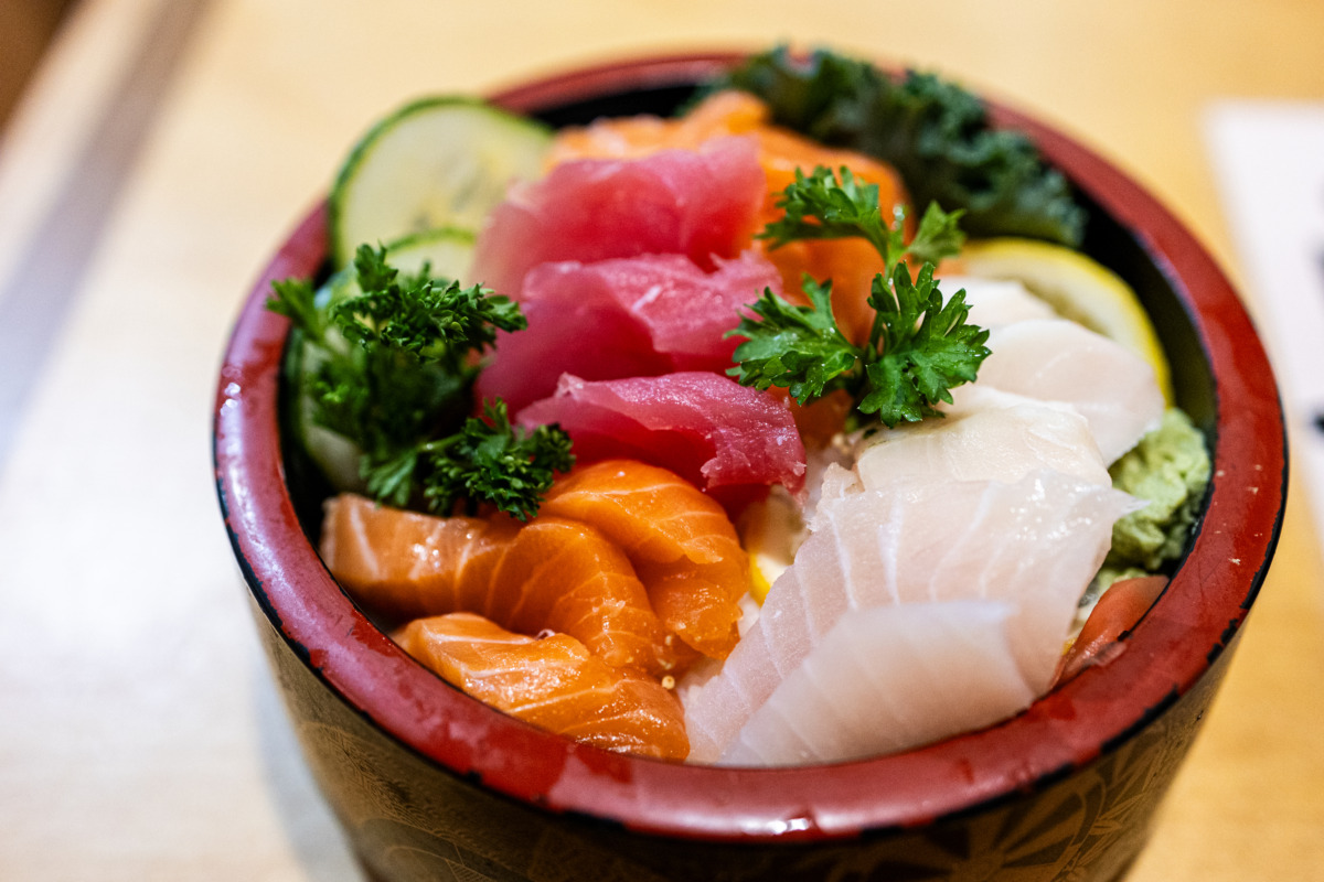 The choice of the day was the Chirashi Sushi—a $15.95 bowl filled with fresh, raw fish and seafood over sushi rice, also accompanied by a green salad and miso soup, which, by the way, is something special itself.